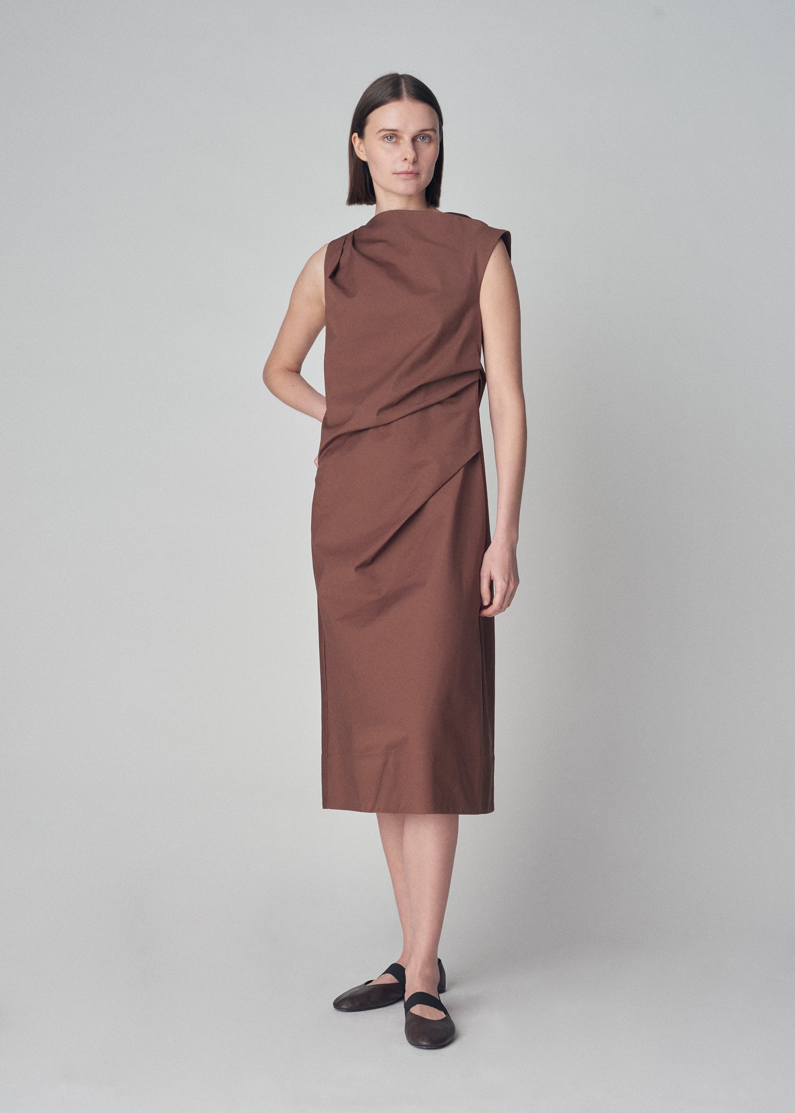 Midi Sheath Dress In Cotton Silk Poplin Brown Co